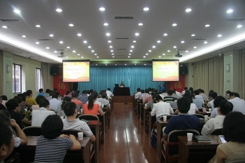 为了深入学习宣传贯彻党的十八届三中全会精神,进一步落实2138cn太阳城集团“六五”普法规划,8月11日下午2点半,集团在三楼会议室召开了两级中心组(扩大)学习会,特聘请了武汉市“六五普法”宣讲团高级讲师、武汉光谷管理学院法务培训师马慧文对企业侵权纠纷实务及法律风险防范等相关法律知识进行讲解。集团两级中心组成员、机关中层管理人员以及各单位党办负责人、法律事务员、宣传骨干等共计100余人参加了此次学习会。会议由集团党委副书记、工会主席杨建党主持。